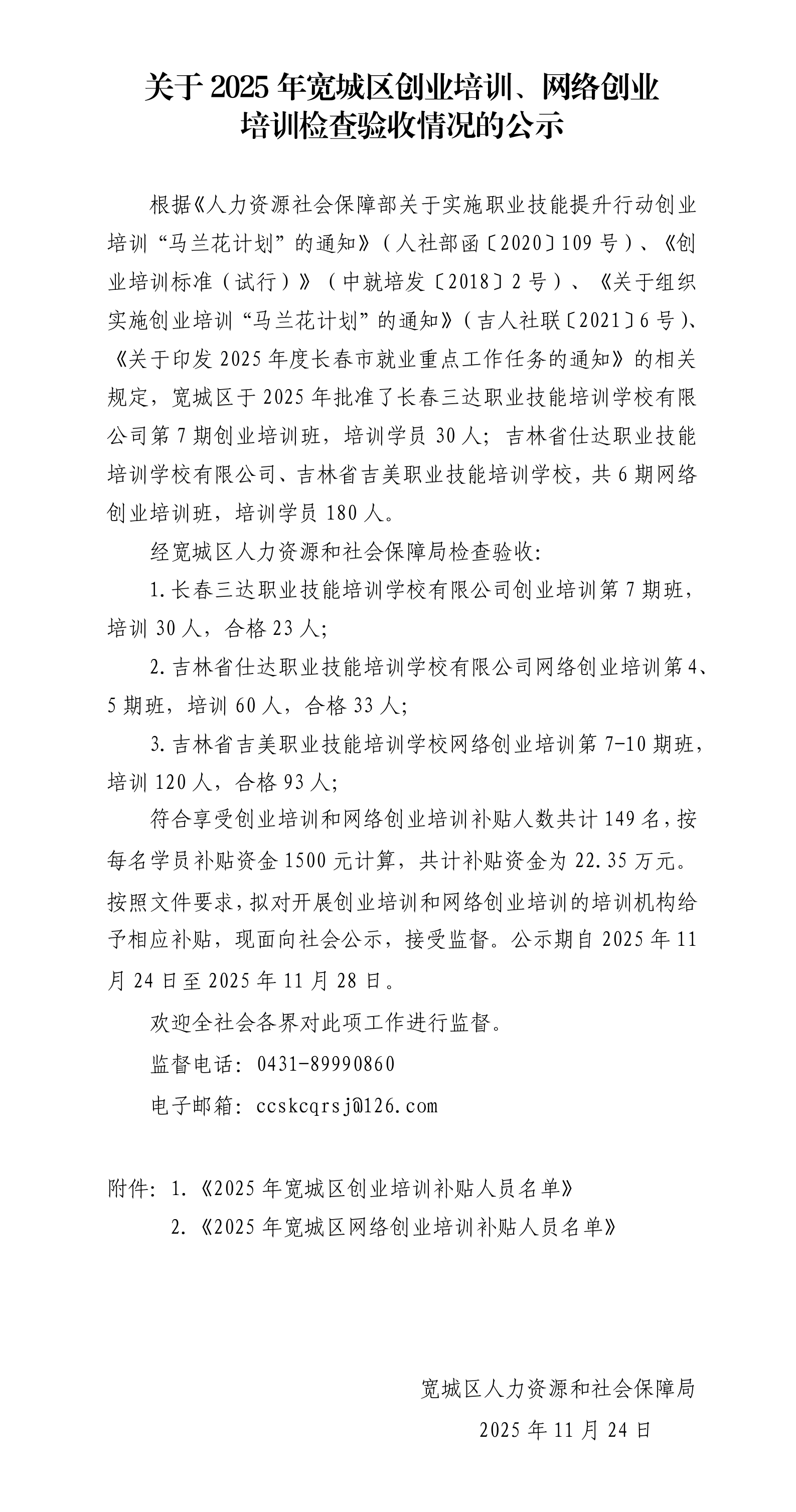 关于2025年lol下注 创业培训、网络创业培训检查验收情况的公示