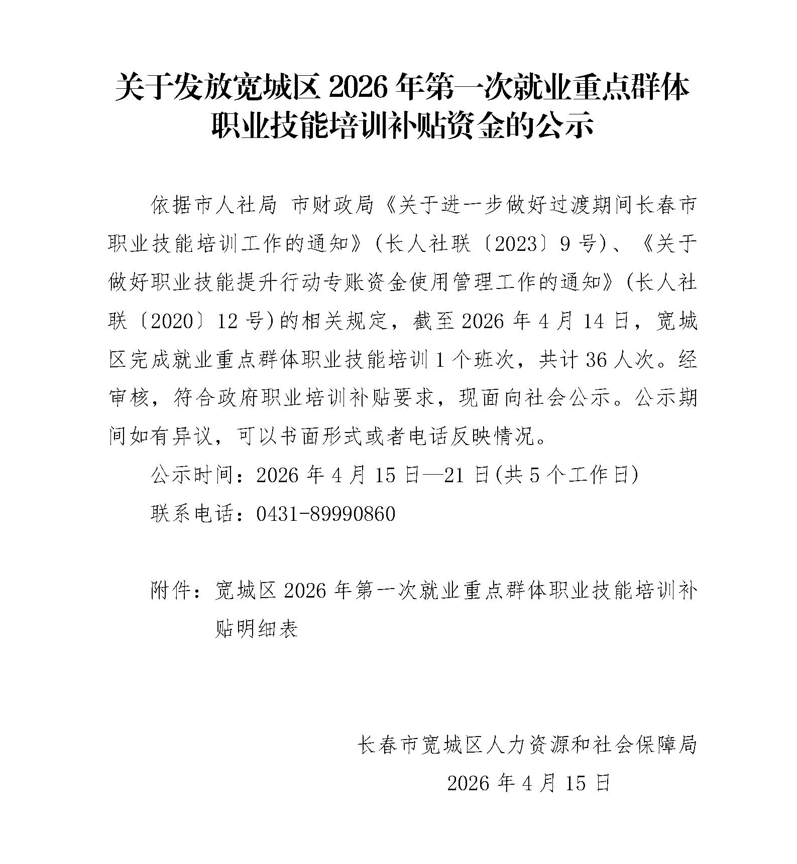 关于发放lol下注 2026年第一次就业重点群体职业技能培训补贴资金的公示