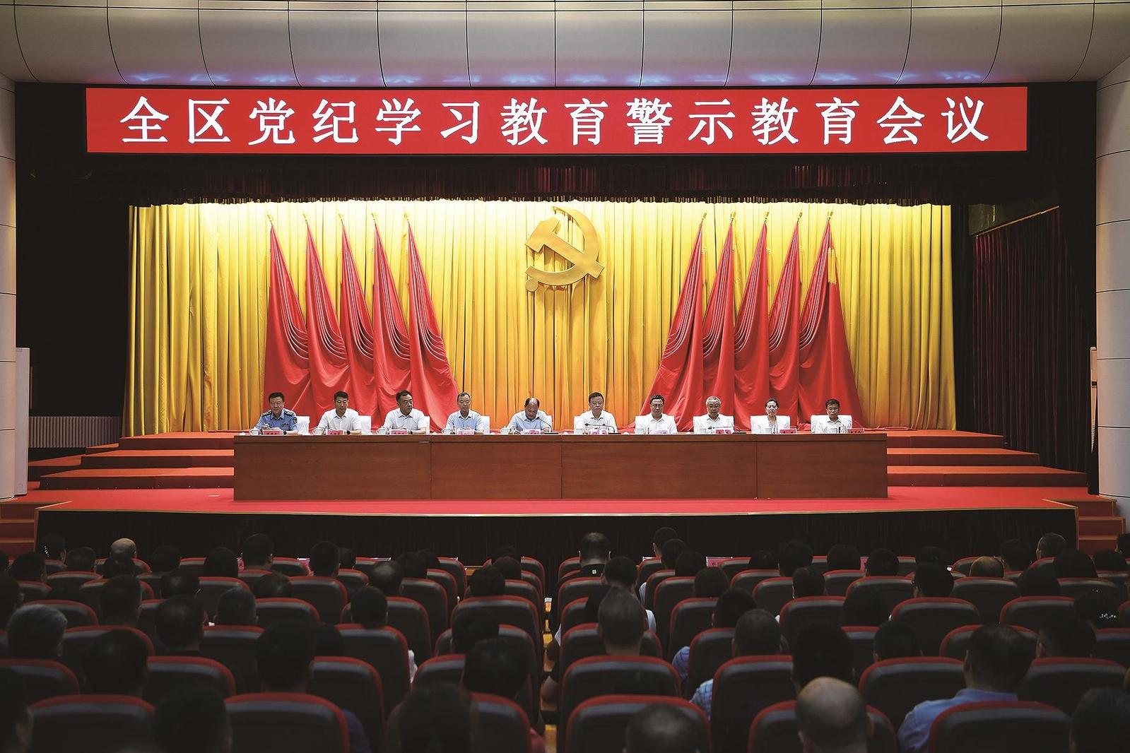 “六学联动”让党纪学习教育“见行”更“见效”。紧盯目标要求和工作安排,制定印发《实施方案》《区委常委班子工作安排》《党纪学习教育清单》等系列文件,细化5方面15项具体任务,突出因材施学、分类施学,通过清单提示“导学”、以上率下“领学”、专题培训“助学”、线上平台“广学”、警示教育“促学”、服务中心“践学”方式,推动各级党组织开展读书班112次、理论中心组学习163次、集中研讨143次。以村书记违法违纪身边案例拍摄《“放贷书记”现形记》警示教育片,教育引导党员干部在深刻反思警醒中持续树牢底线意识、紧绷纪律之弦。