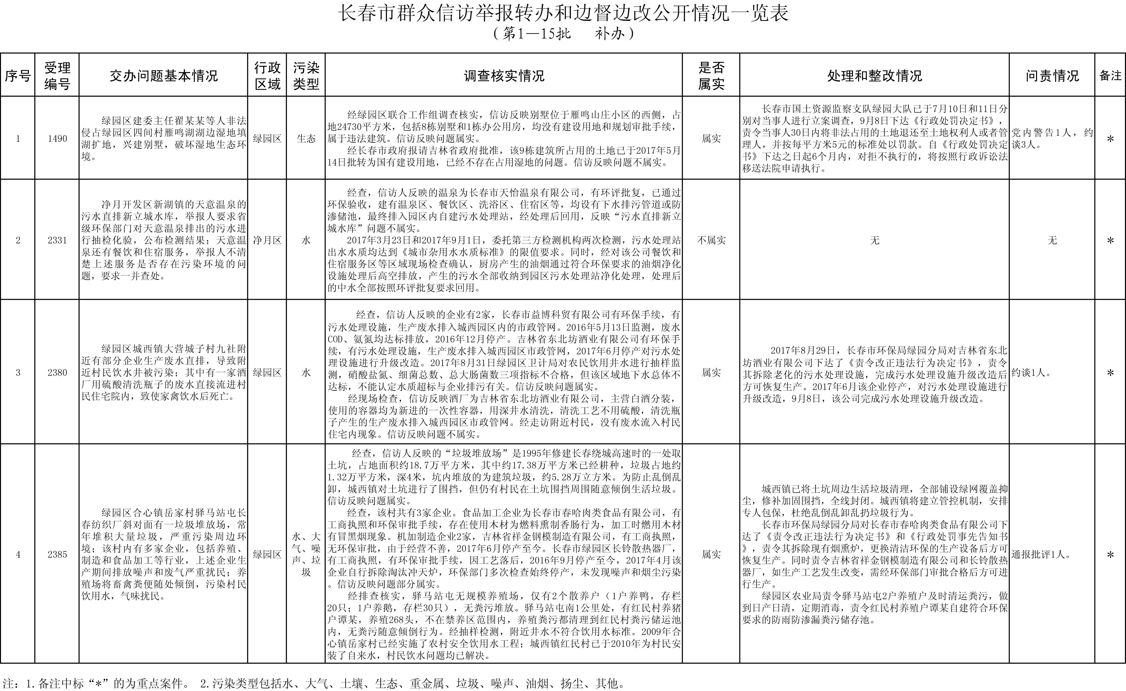 长春市群众信访举报转办和边督边改公开情况一览表(第1—15批 补办)