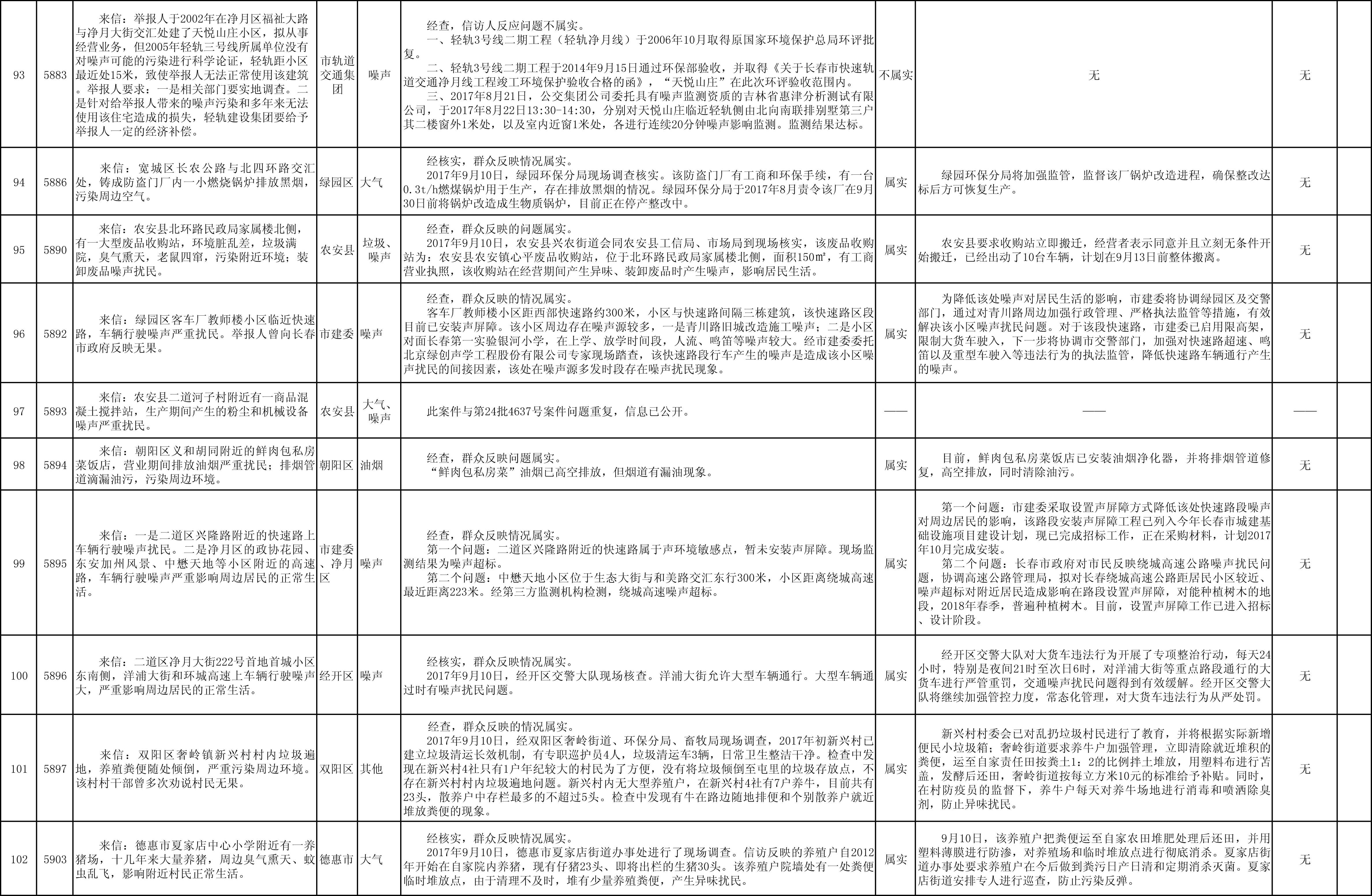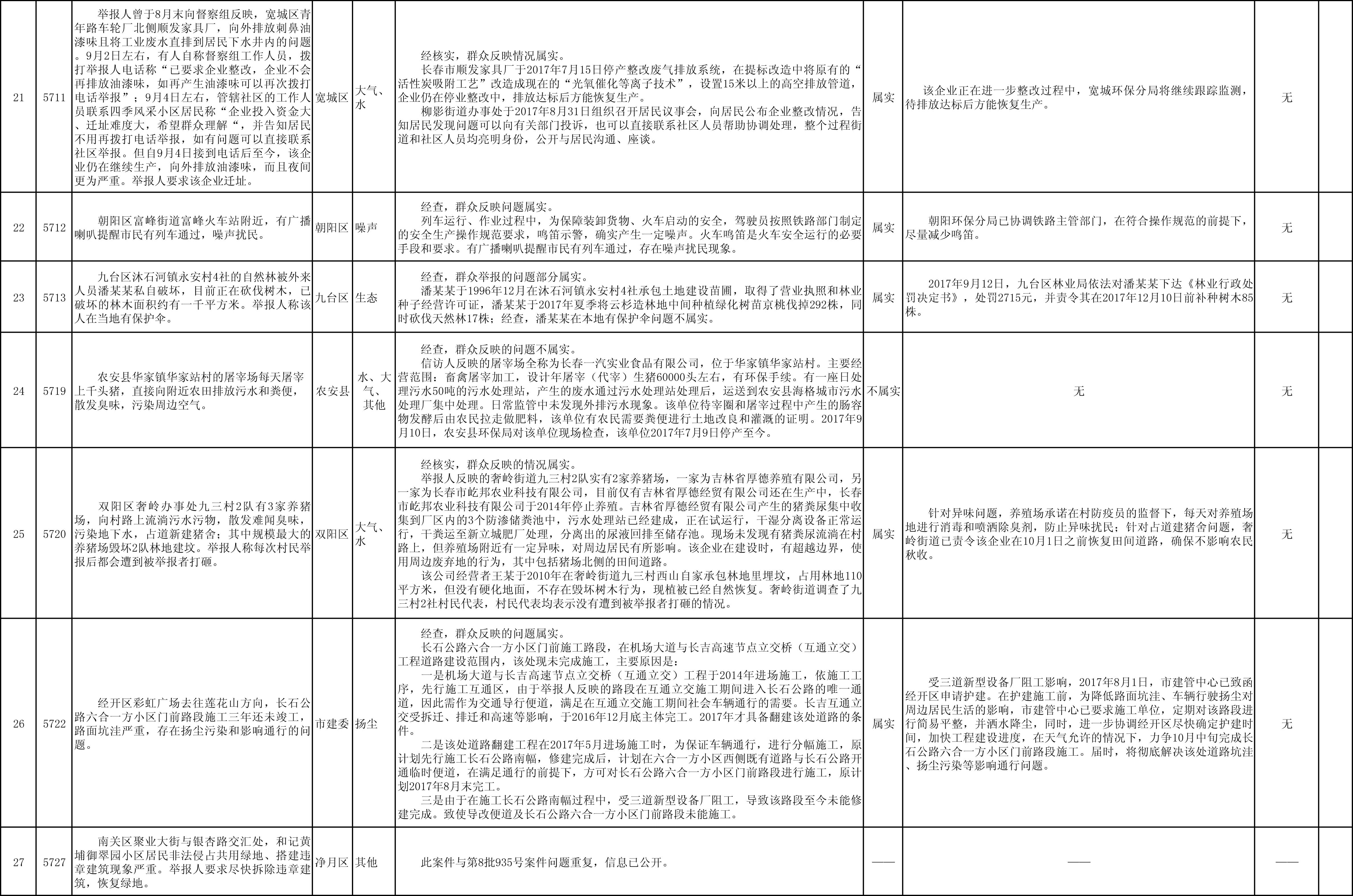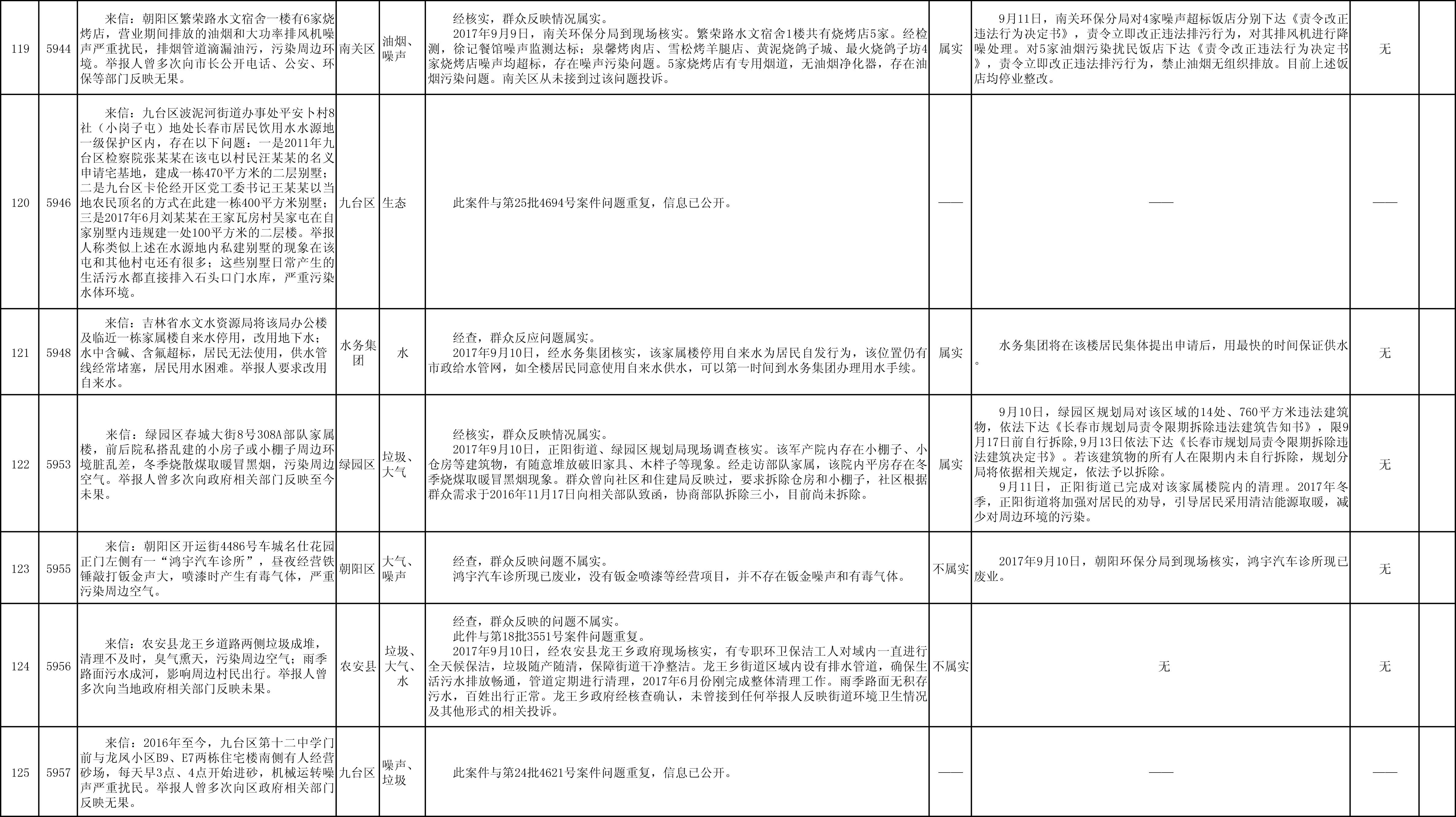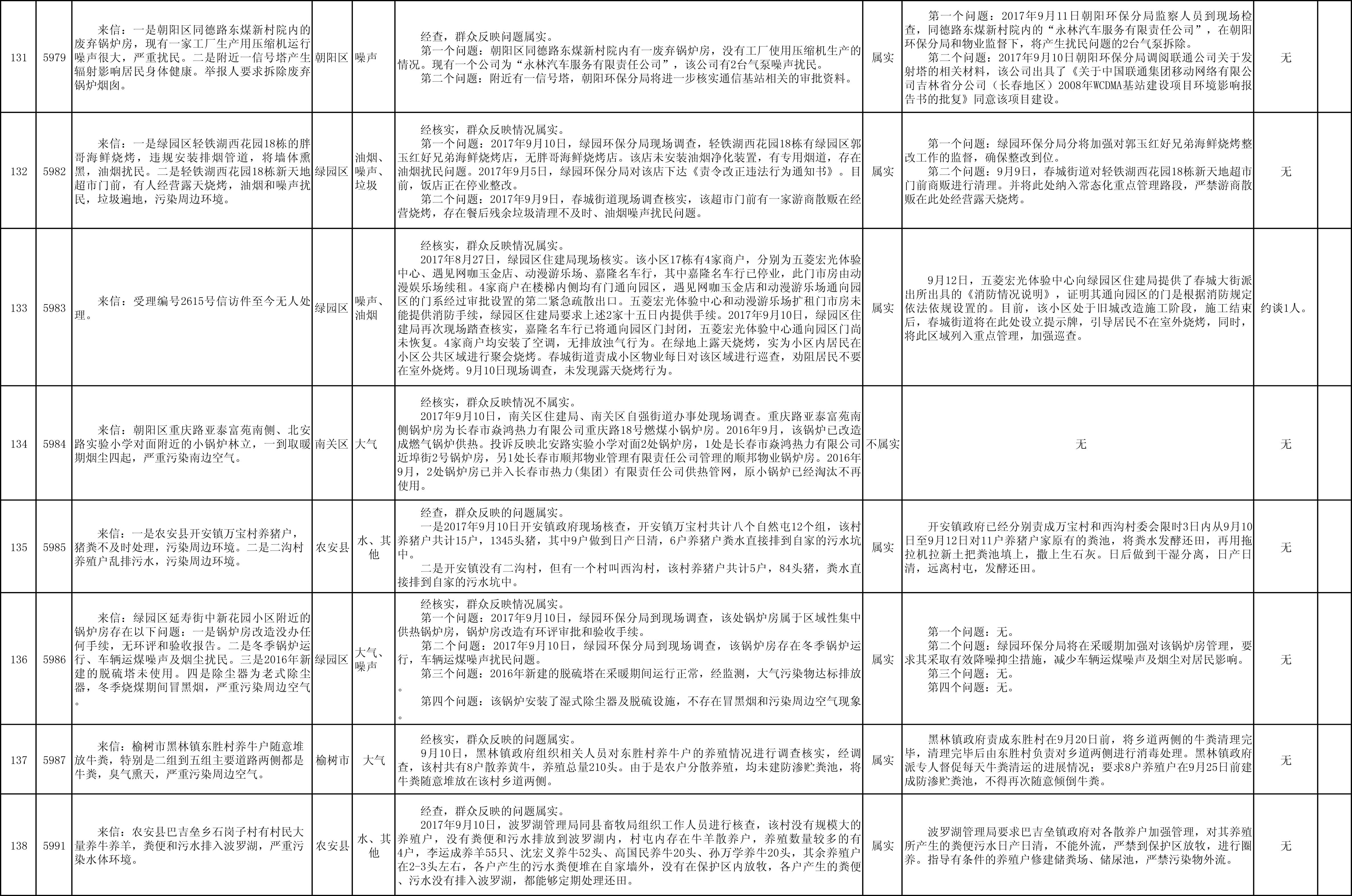 长春市群众信访举报转办和边督边改公开情况一览表(第29批 2017年9月18日)