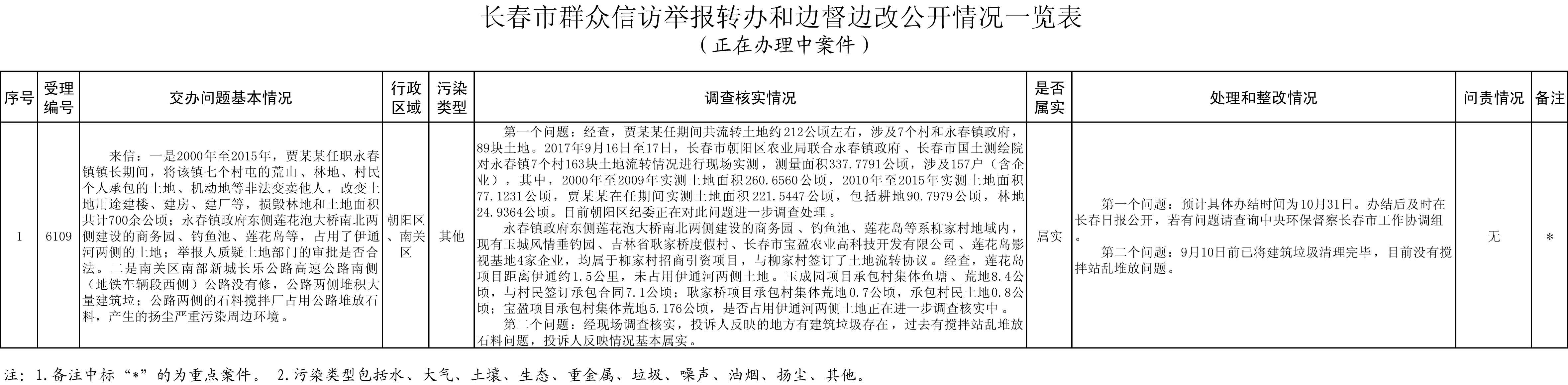长春市群众信访举报转办和边督边改公开情况一览表(正在办理中案件)