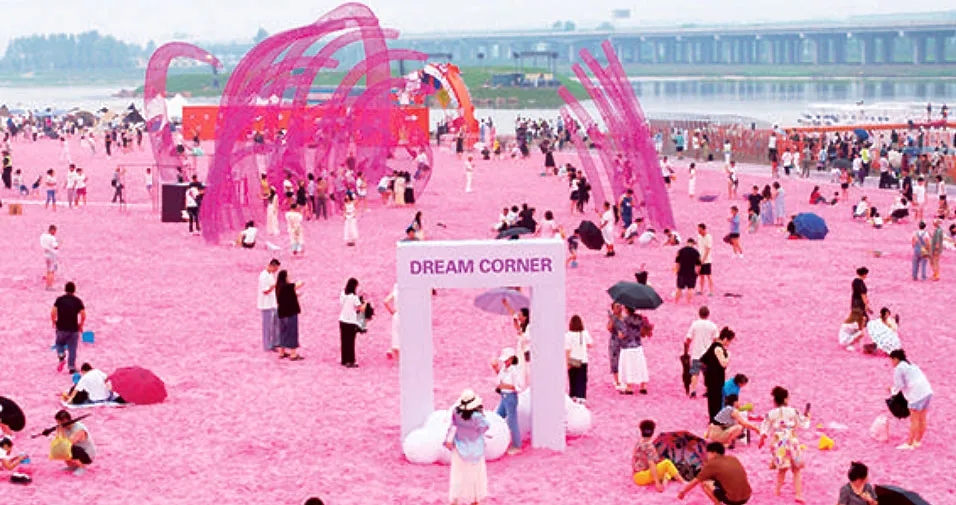 肆季南河岸线公园2万平方米粉色沙滩,突破地理局限的文化想象力,将“去肆季南河赶海”塑造成长春新的城市潮流。