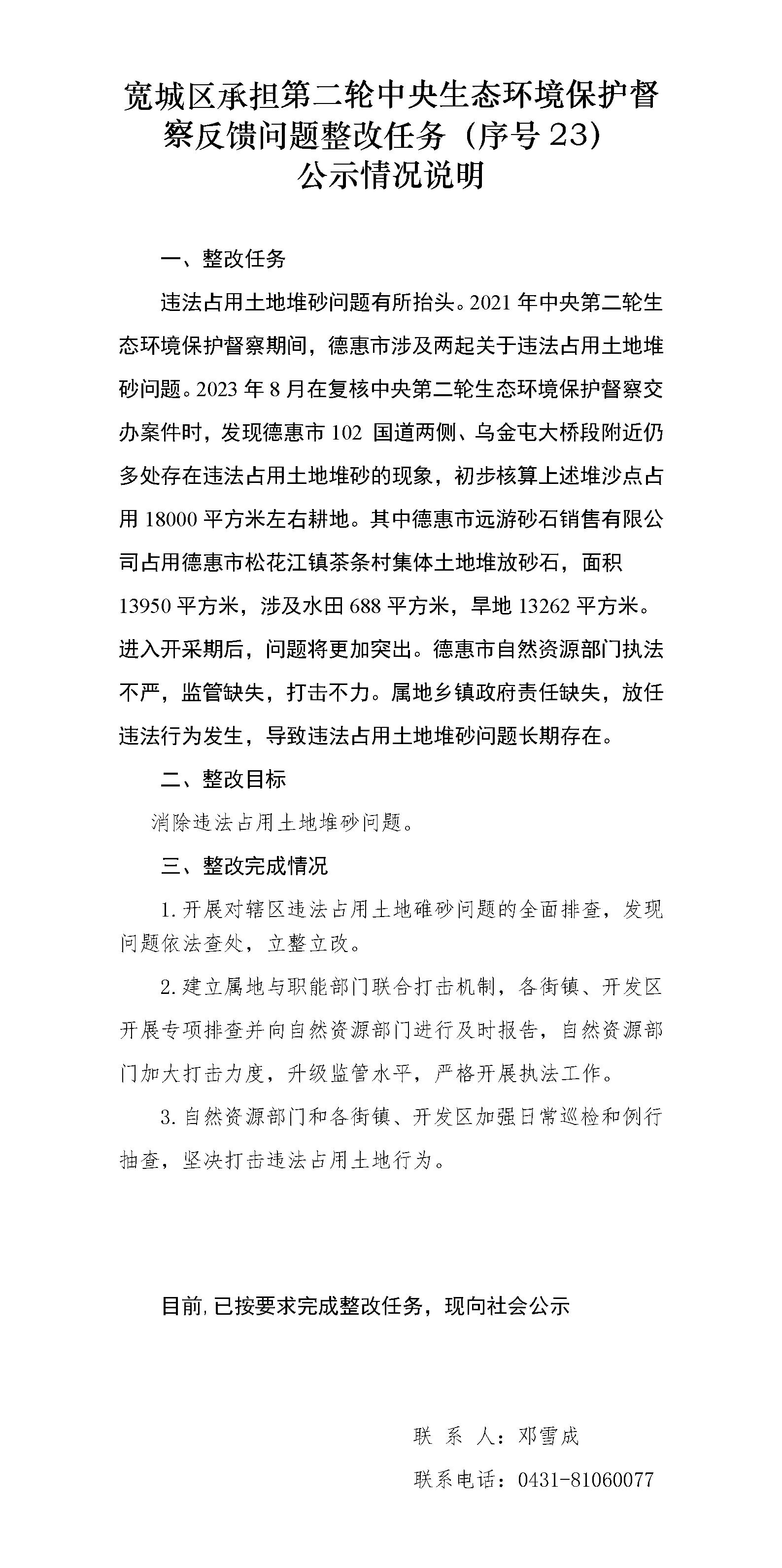 lol下注 承担第二轮中央生态环境保护督察反馈问题整改任务(序号23)公示情况说明