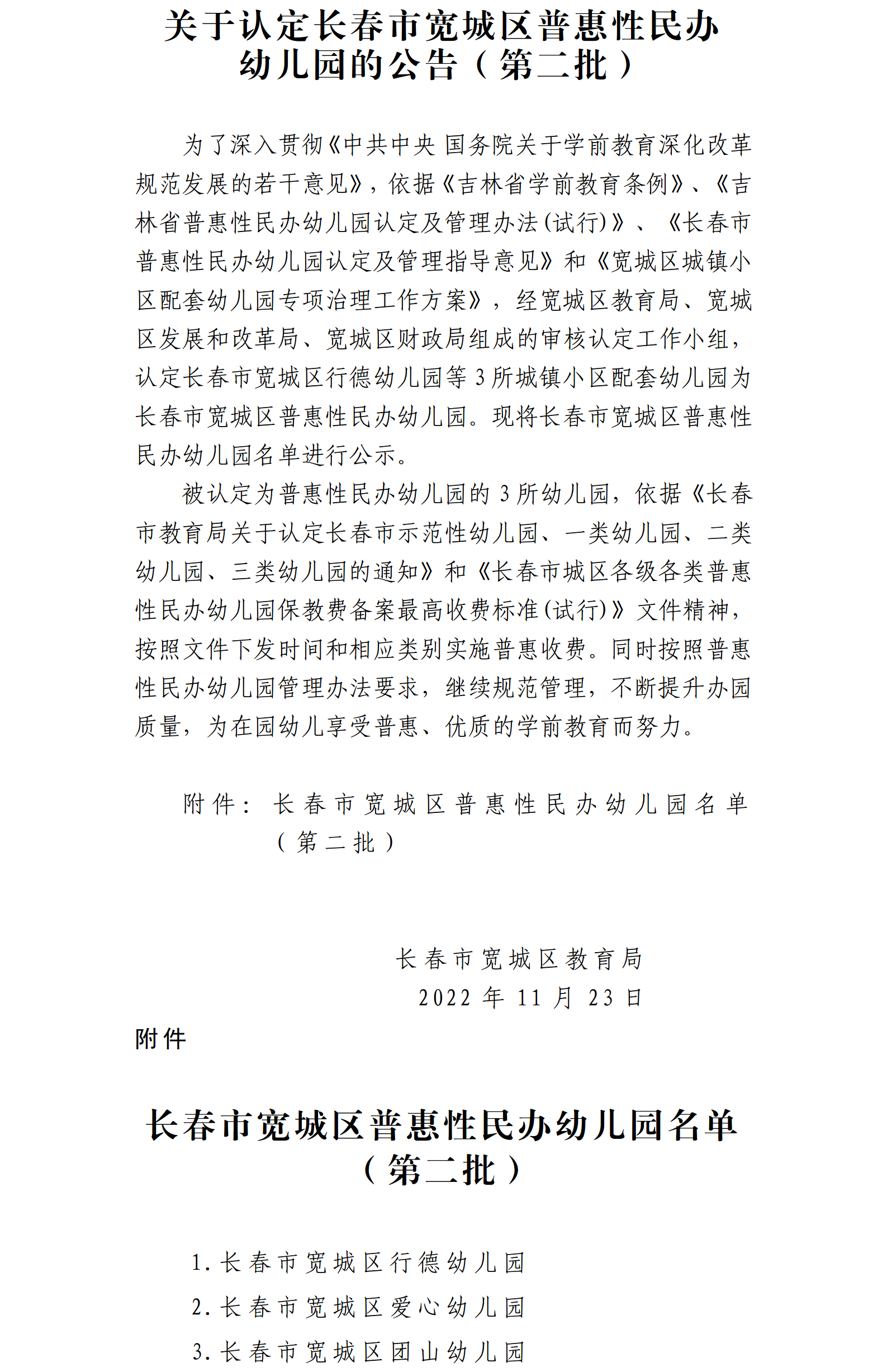 关于认定lol下注 普惠性民办幼儿园的公告(第二批)