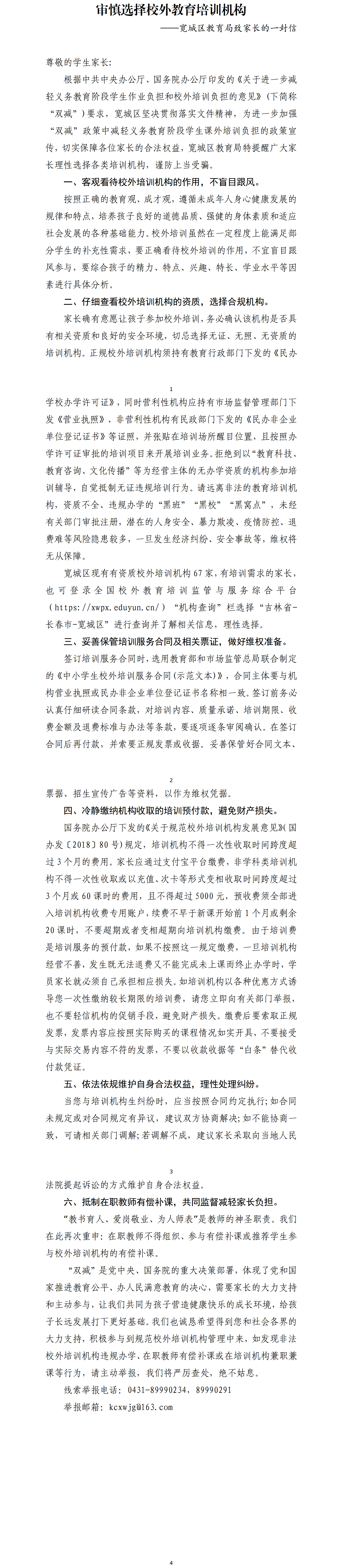 审慎选择校外教育培训机构——lol下注 教育局致家长的一封信