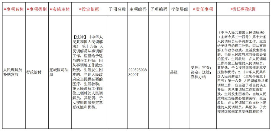 【司法局】人民调解员补贴发放