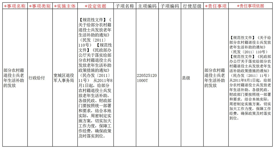 【退役军人事务局】部分农村籍退役士兵老年生活补助的发放