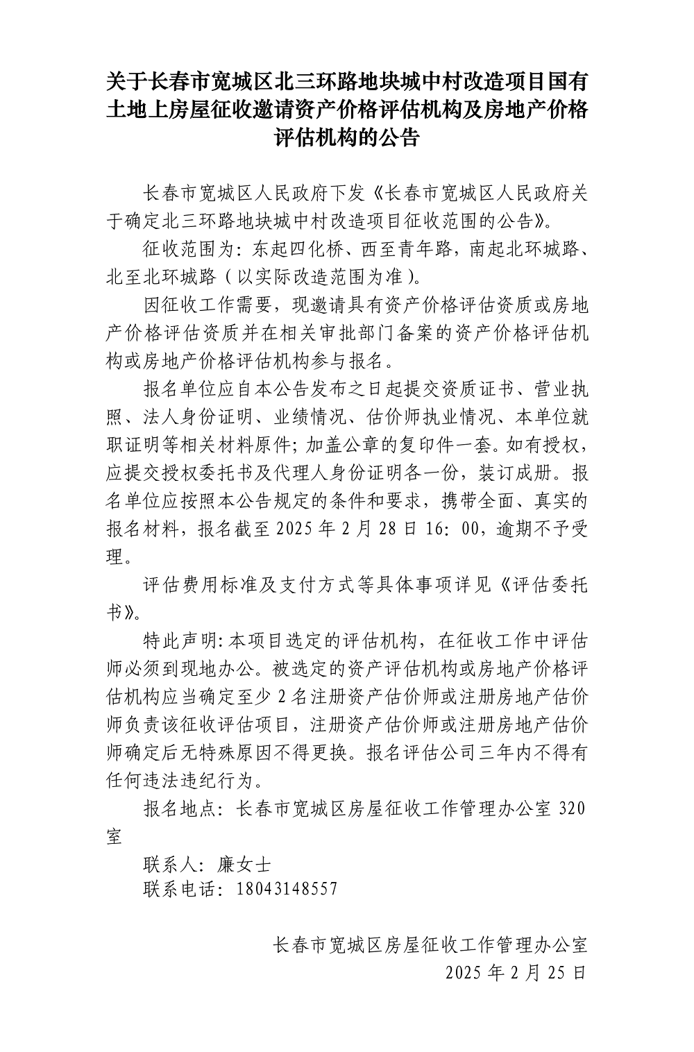 关于lol下注 北三环路地块城中村改造项目征收邀请森林资源资产价格评估机构的公告