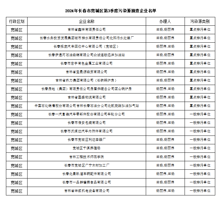 2024年lol下注 第3季度污染源抽查企业名单