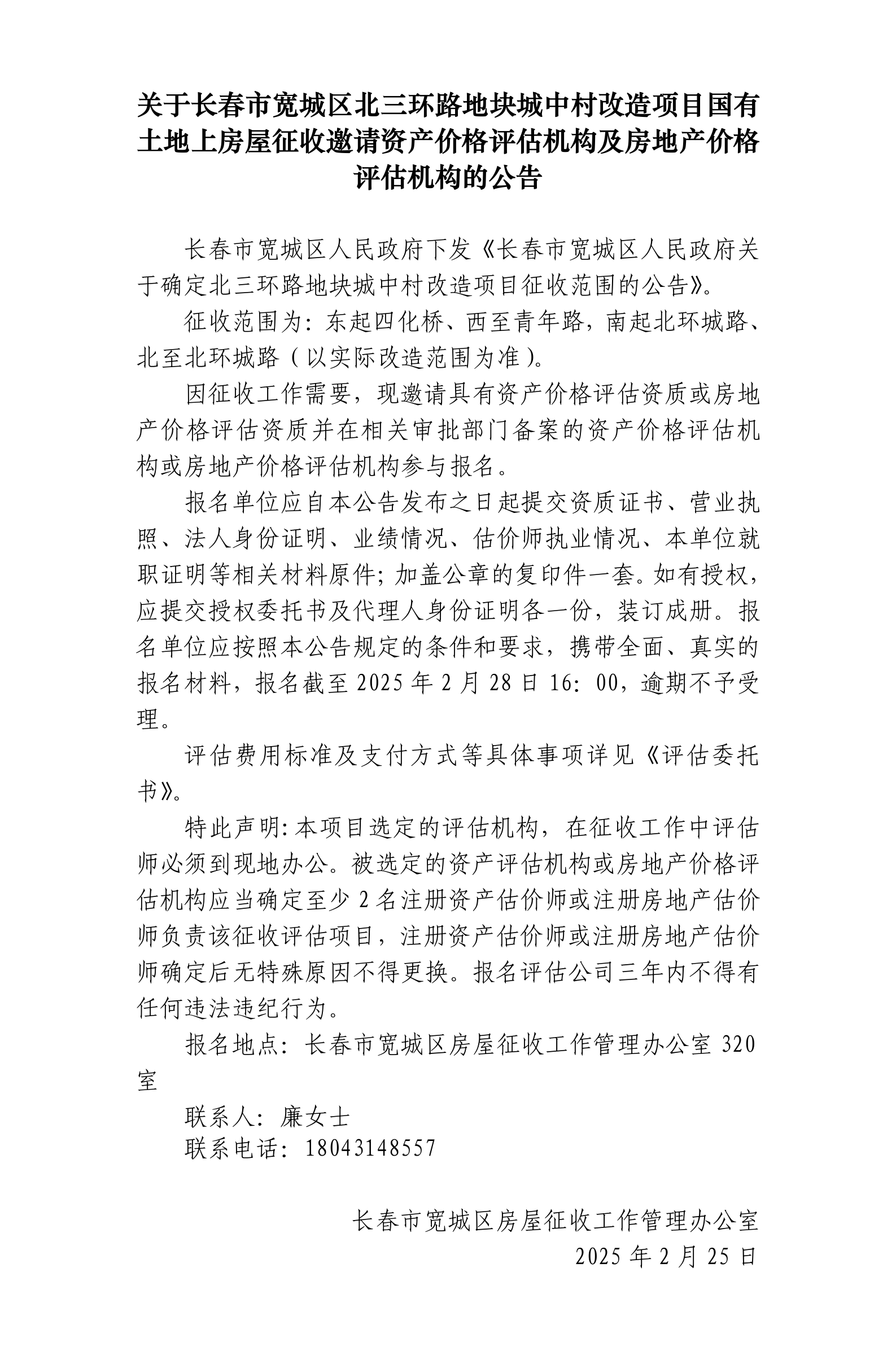 关于lol下注 北三环路地块城中村改造项目国有土地上房屋征收邀请资产价格评估机构及房地产价格评估机构的公告