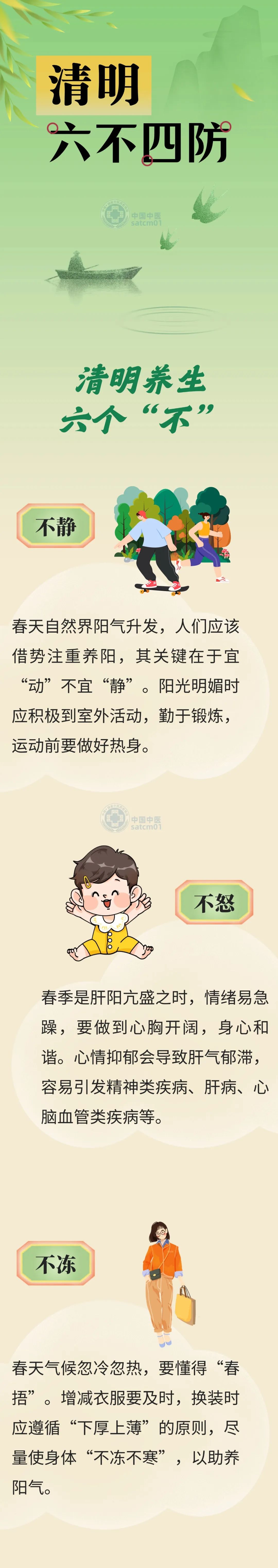 清明时节,气候日渐转暖,空气湿度加大,桃花初绽,杨柳泛青,莺飞草长,鸟语花香,是重要的养生好时机。中医认为,清明节气以“顺应时令,升发阳气,调达肝胆,强健脾胃”为养生保健要点,具体应做到“六不四防”。