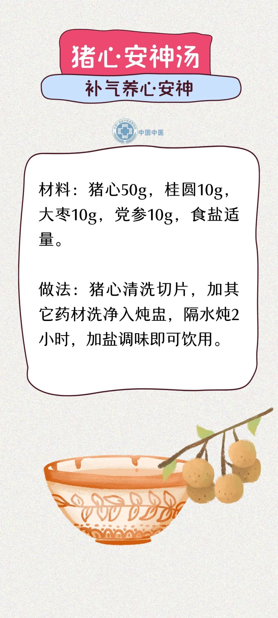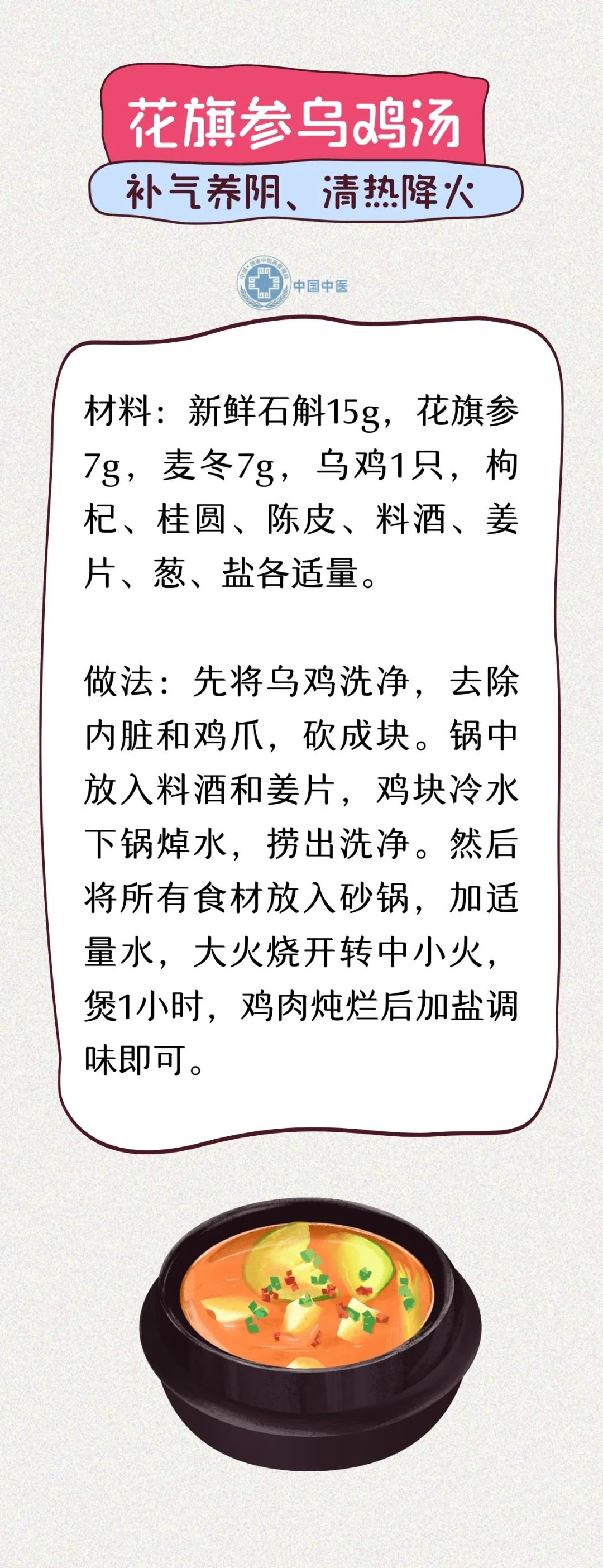 夏季温度逐渐升高,阳气渐旺,雨水也有所增多,湿热开始向人们袭来。此时养生要注意健脾祛湿、养心护心。饮食应清淡,以易消化、富含维生素的食物为主。下面介绍几款健脾利湿、养心安神、补气养阴的养生药膳,以供选用。