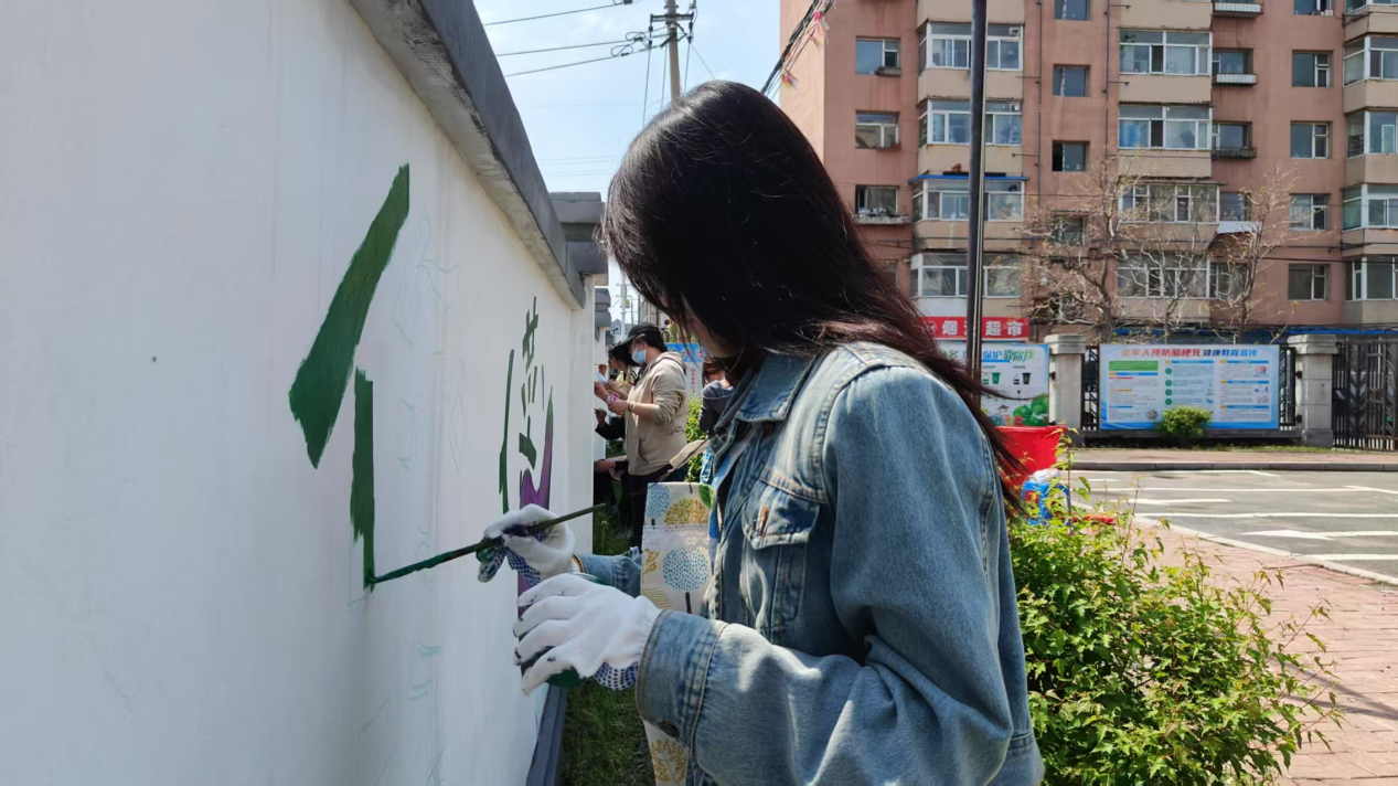 繁星志愿者服务队、吉林艺术学院戏剧影视学院“红艺+”志愿服务实践团,于5月16日,在团山街道龙山路社区举办“青春彩绘·焕新宽城”助农墙绘主题文明实践活动。