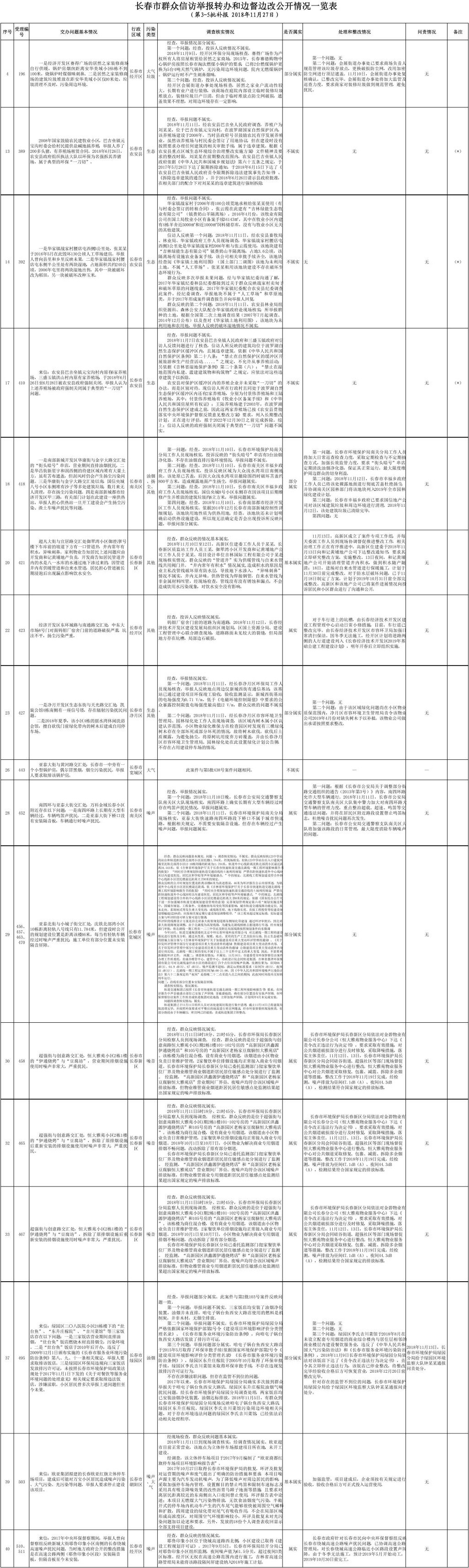长春市群众信访举报转办和边督边改公开情况一览表(第3-5批补报 2018年11月27日)